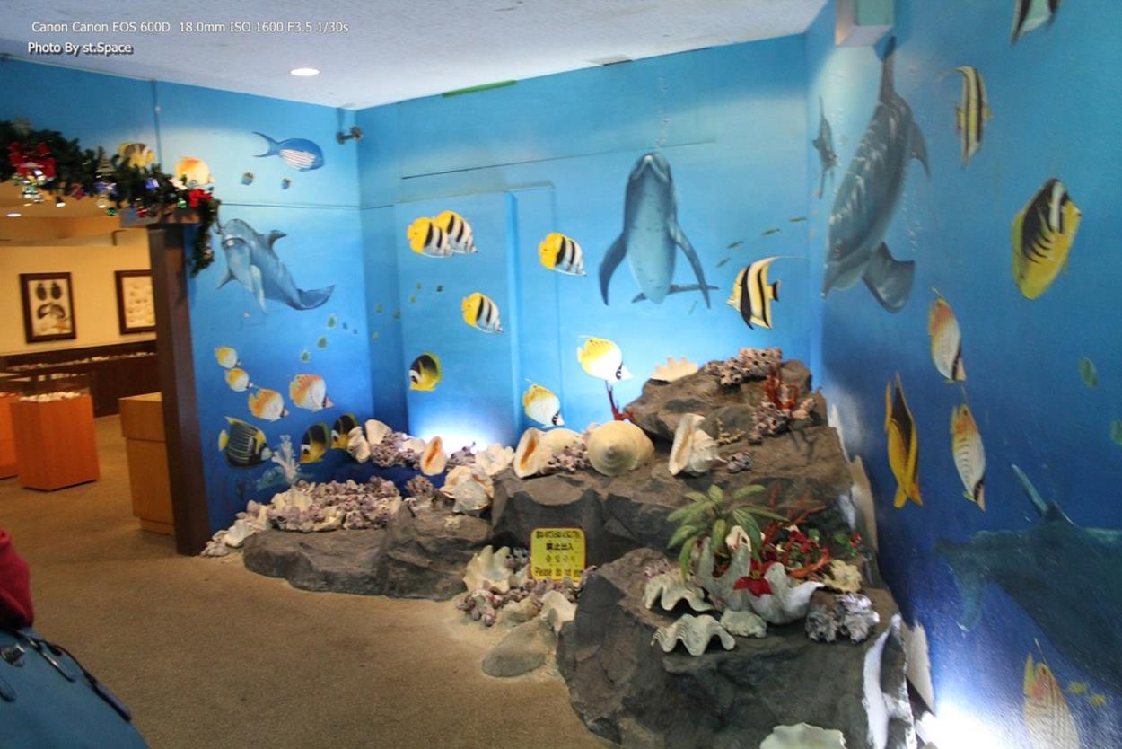 오키나와 북부 나고만에서 건져 올린 조개들로 전시되어 있는데, 32개국에 1만 개 밖에 없는 조개도 전시되어 있다는군요.