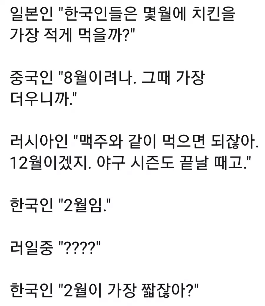 한국에서 가장 치킨을 짧게 먹는 달