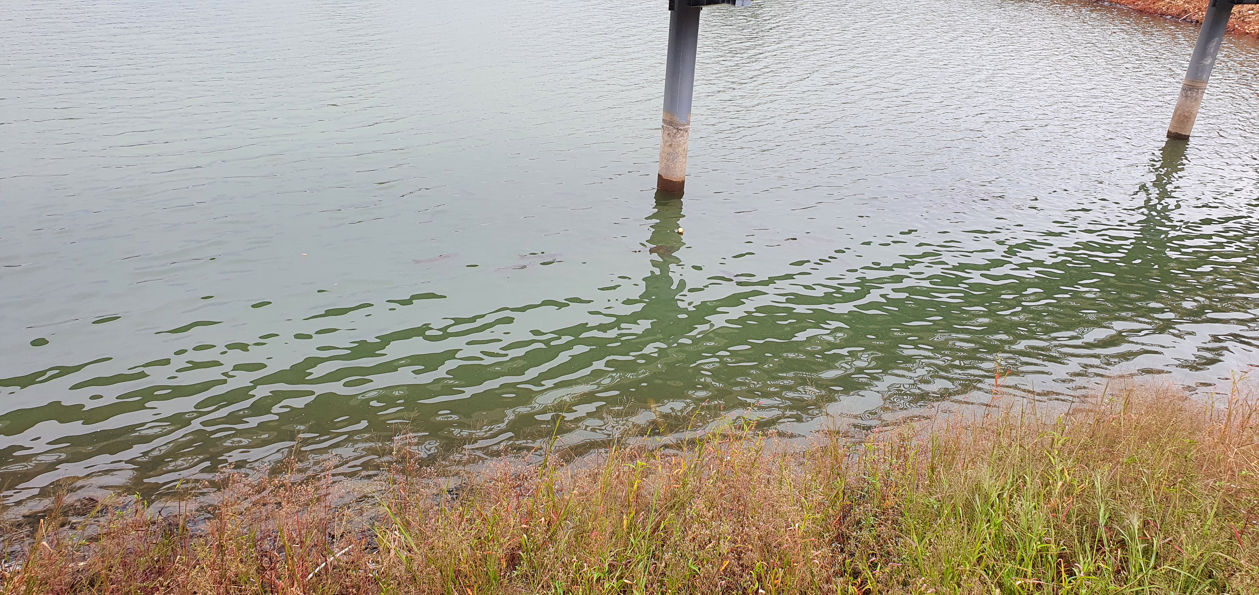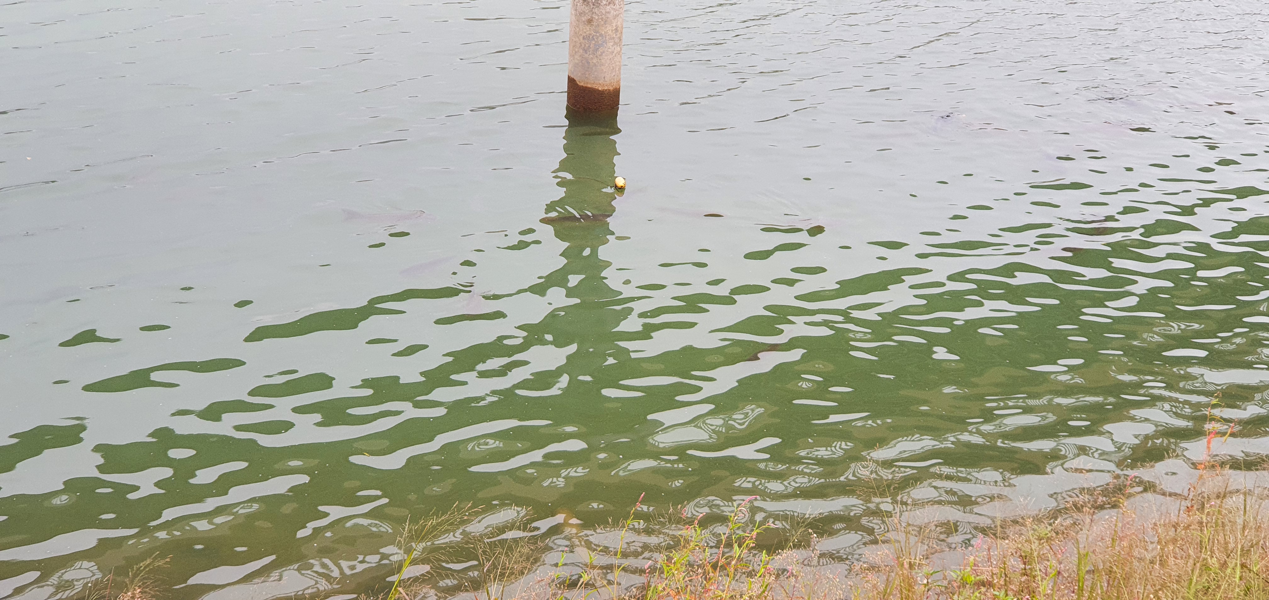 백운호수의 잉어들이 잔교에서 사람들이 던져주는 먹이를 먹으려고 모여든다.