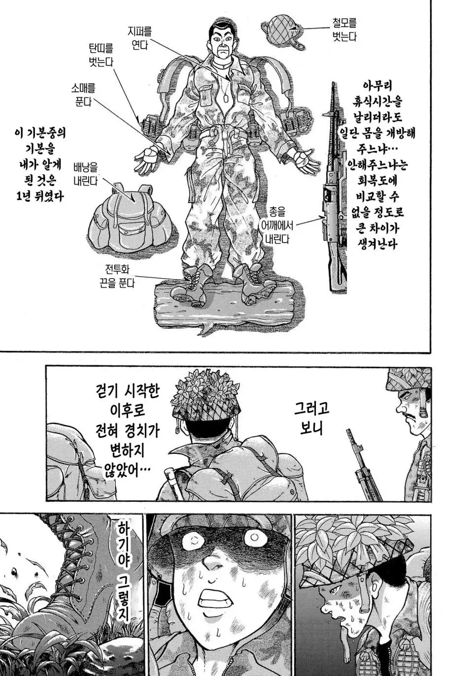 바키 작가가 그린 일본 육상자위대 제1공정단 30KG 군장의 100Km 행군 만화 2만보 2박3일
