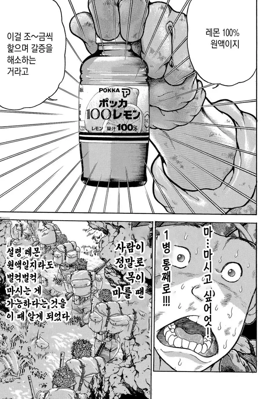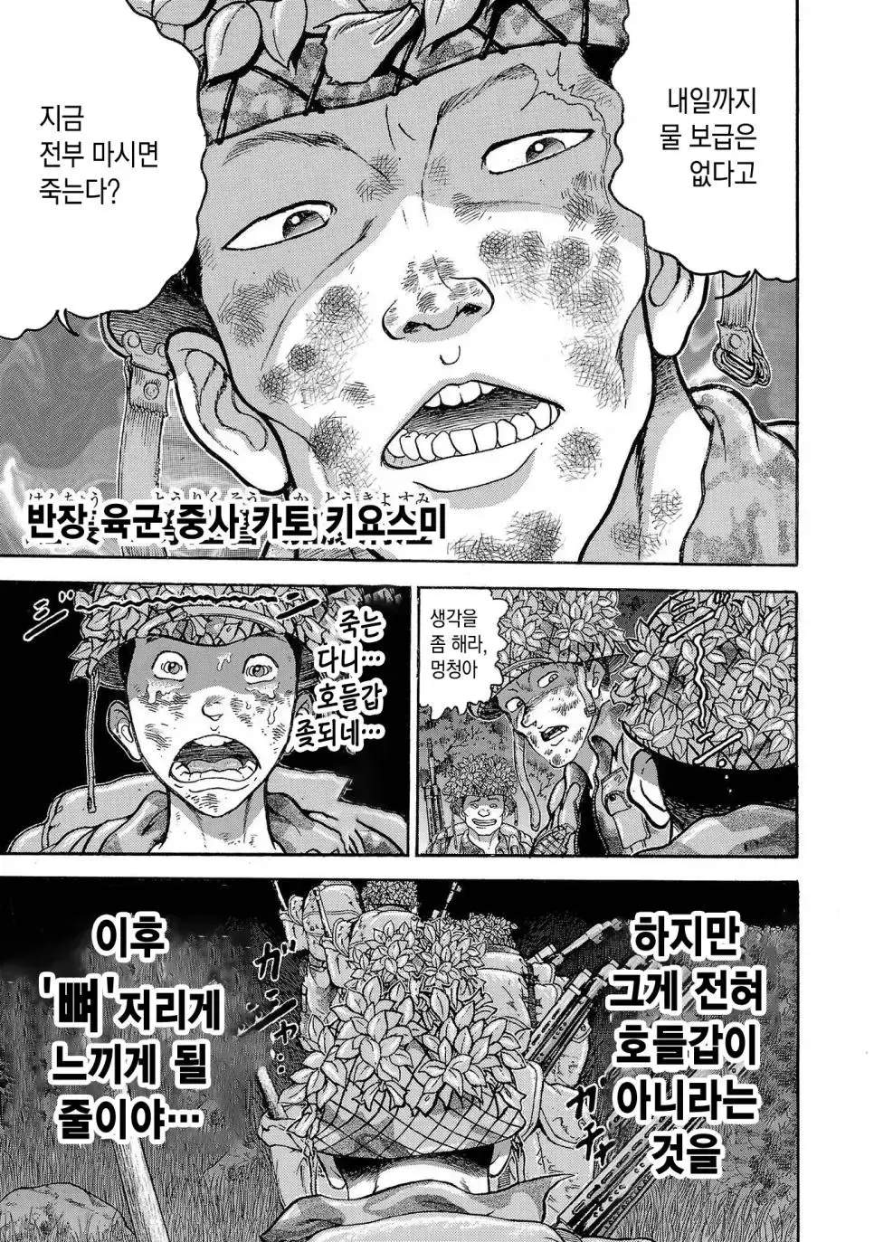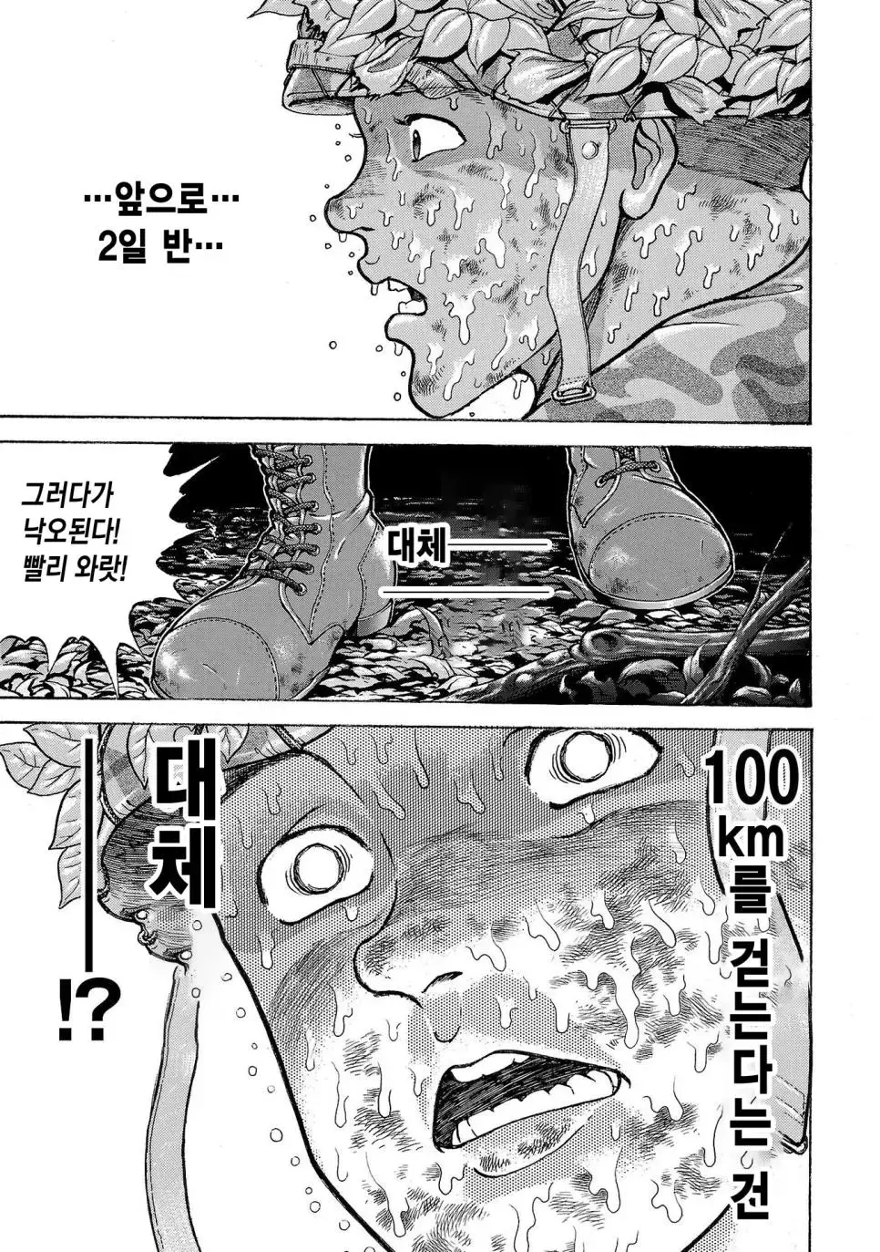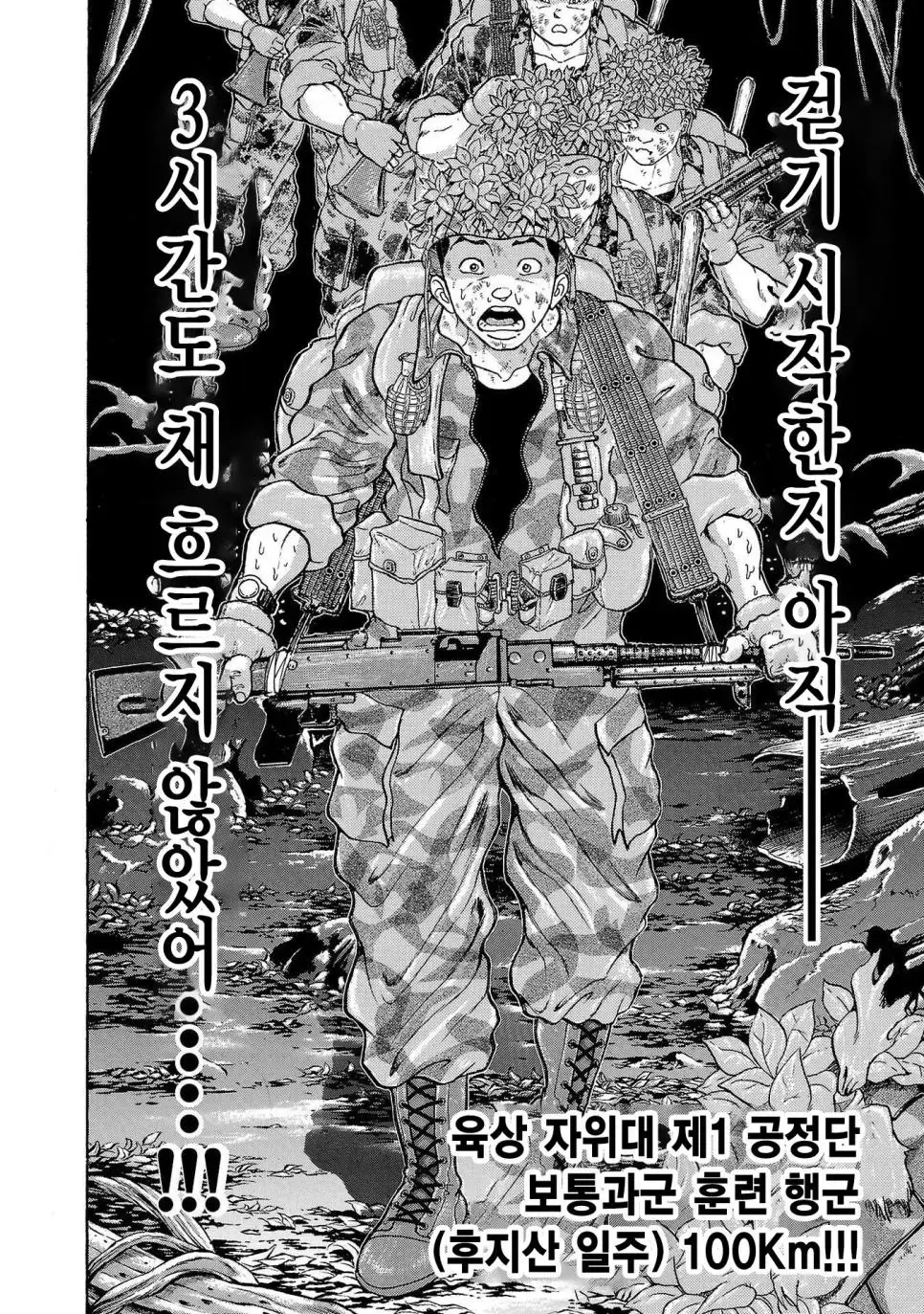 키워드 : 바키 작가, 일본 육상자위대, 제1공정단, 30KG 군장, 100Km 행군, 만화, 2만보, 2박3일, 훈련, 멘탈의 힘