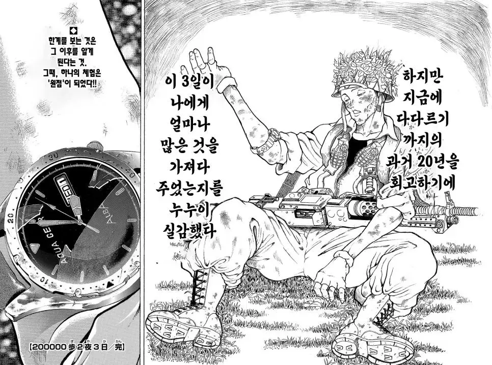 키워드 : 바키 작가, 일본 육상자위대, 제1공정단, 30KG 군장, 100Km 행군, 만화, 2만보, 2박3일, 훈련, 멘탈의 힘