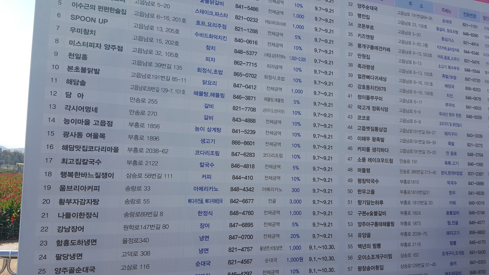 매표소 앞에서 양주 천일홍 축제 스탬프 투어용 추첨권을 나눠준다.