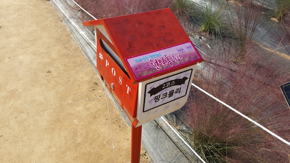 천일홍 중간 즈음의 원두막 앞에 천일홍 스탬프가 있다.