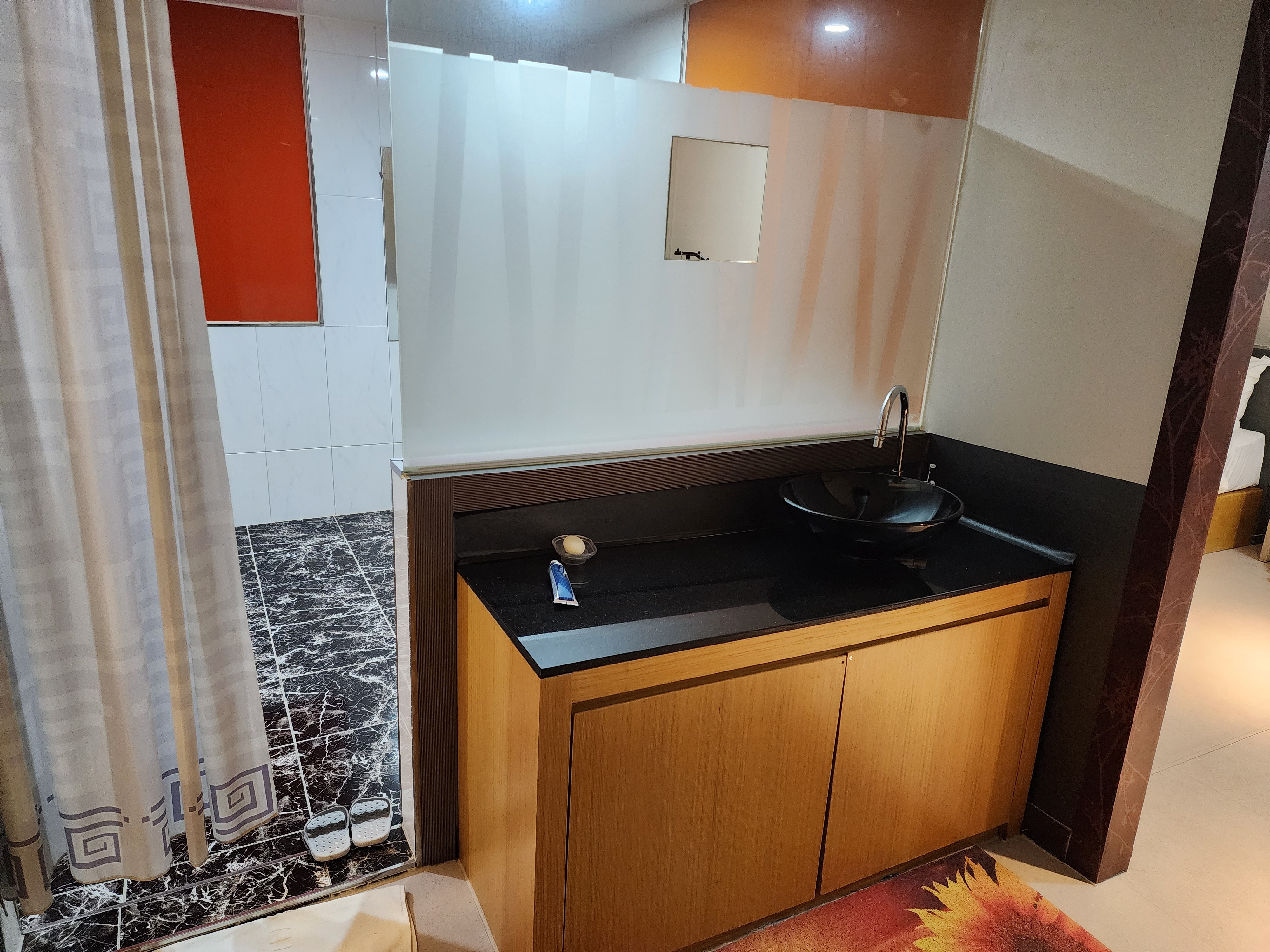 - 비교적 깨끗한 객실: 객실 내부는 비교적 깨끗하게 관리되고 있으며, 특히 욕실은 넓어 편안한 사용감을 제공합니다.