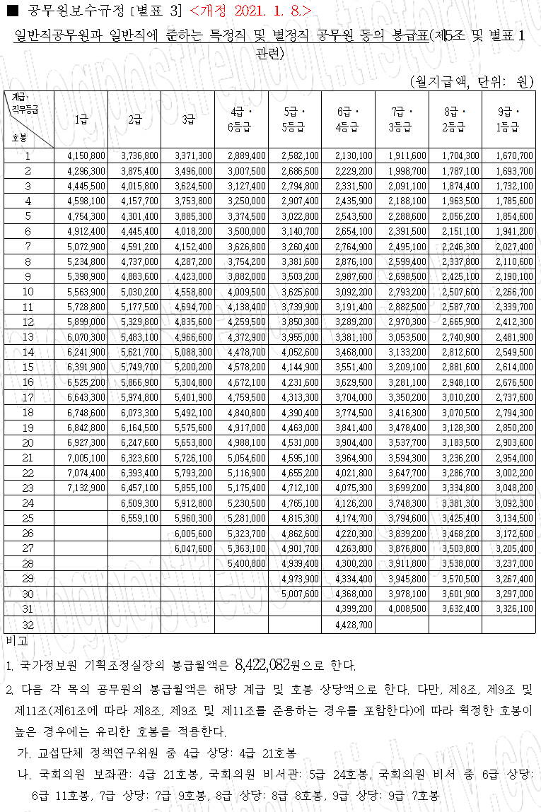 2021년 공무원 봉급 인상률 1.7% 임금인상 2021 교사 호봉표,교육,해경 급여,경찰 공무원 봉급표, 군대 월급 예상