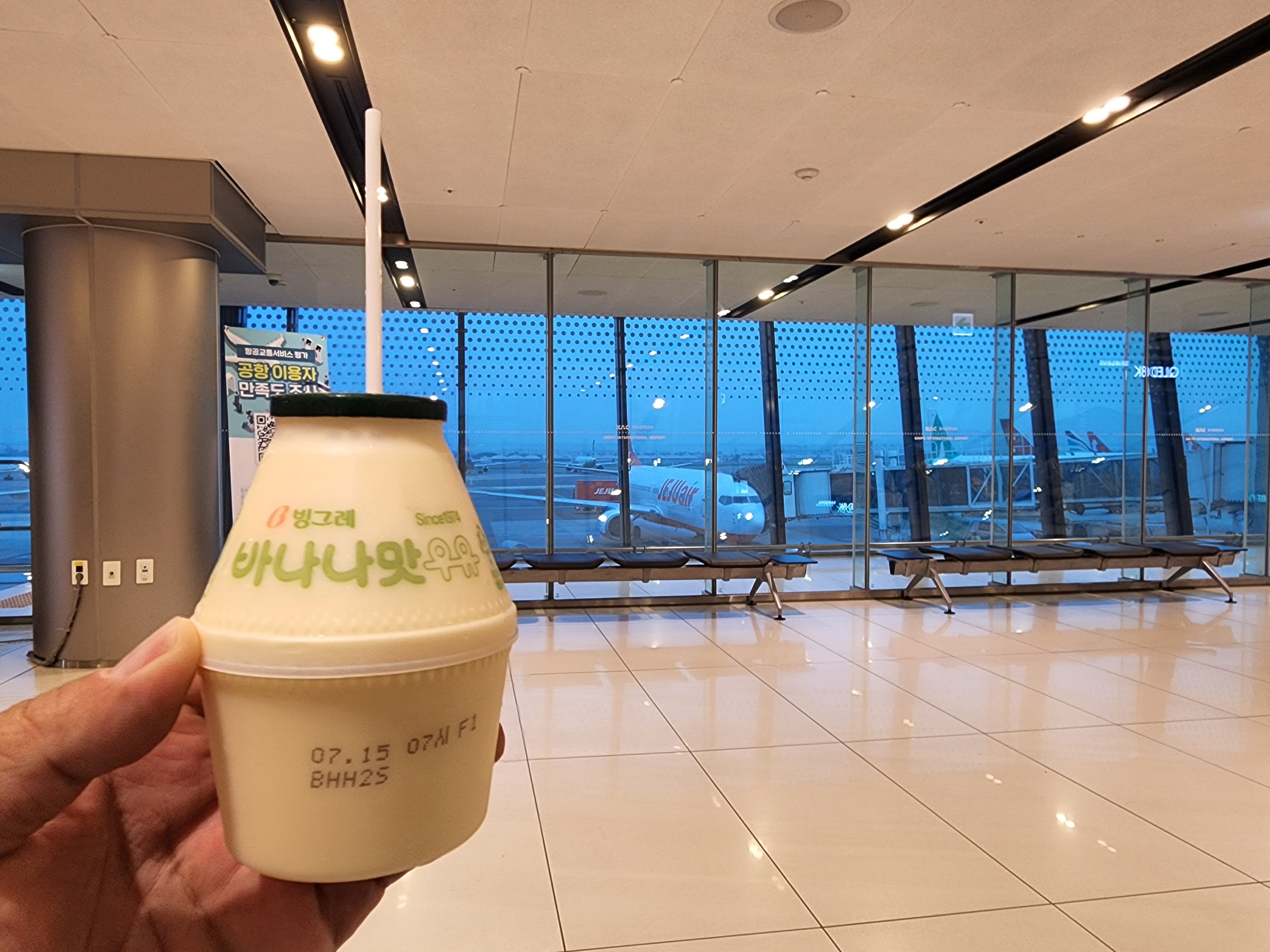 아침 일찍 친구와 김포공항에 가서 바나나 우유 드링킹