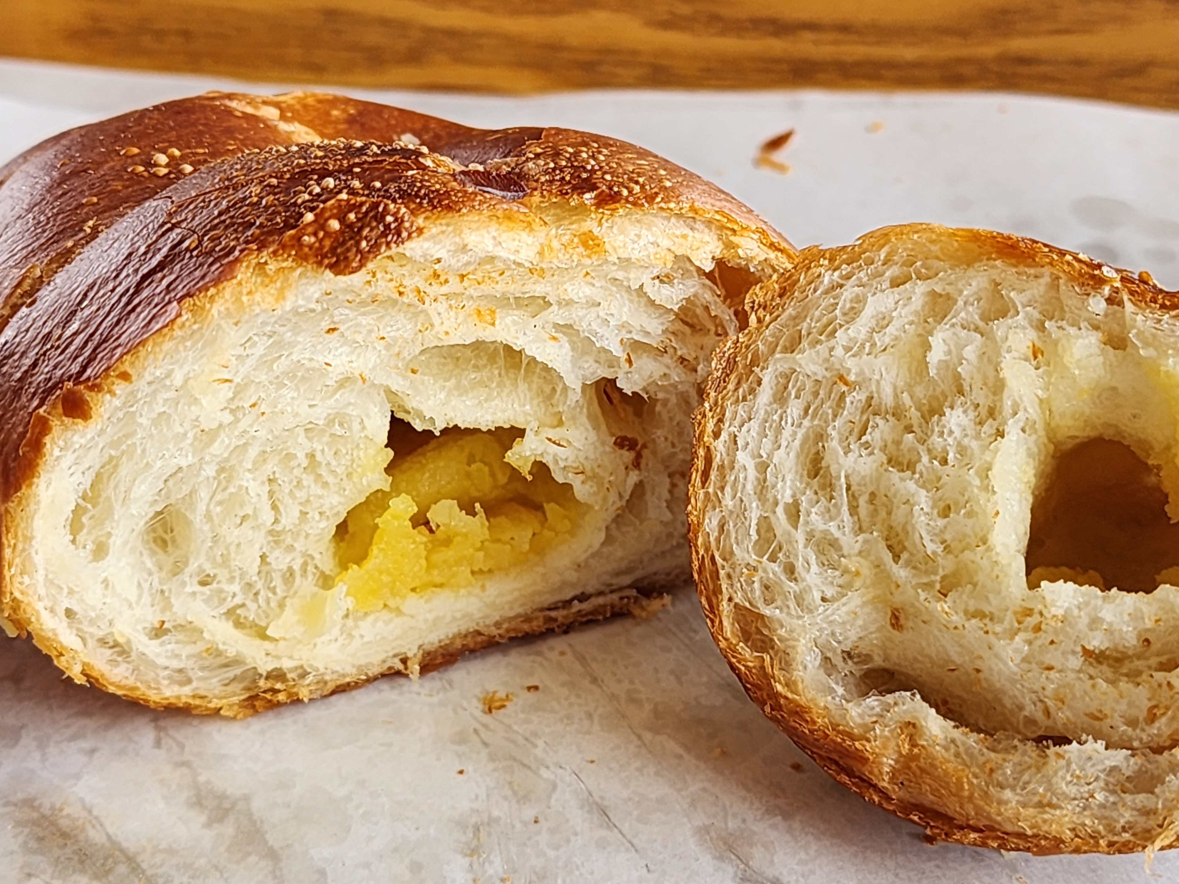 라메르 베이커리의 매력 중 하나는 소금빵인데요. 다양한 종류의 소금빵을 즐길 수 있으며, 애플시나몬, 앙버터, 치즈, 밤 소금빵 등 다양한 풍미를 만나보실 수 있습니다. 소금빵은 오븐에 2분 정도 데운 후 겉바속촉하게 맛있게 즐기실 수 있으며, 집에서도 에어프라이어를 이용해 데워 맛보실 수 있습니다.