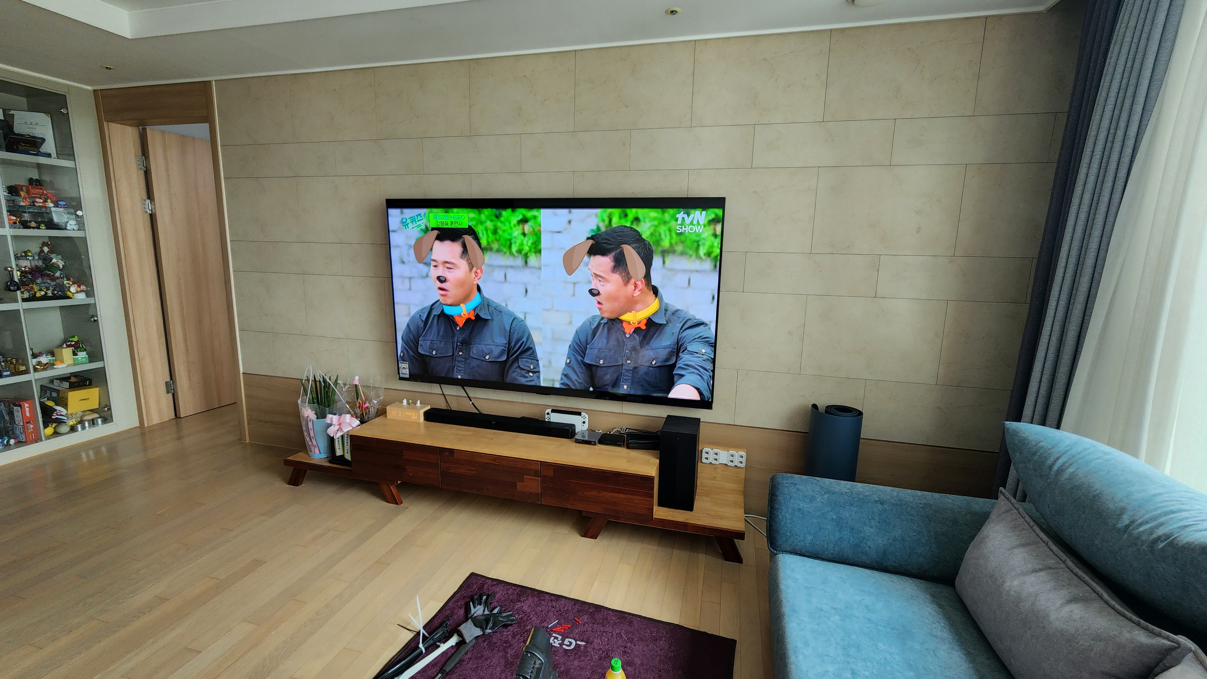 청라로 이사 오기 전에는 23평 아파트라 55인치 티브이로도 만족하고 살았었다.