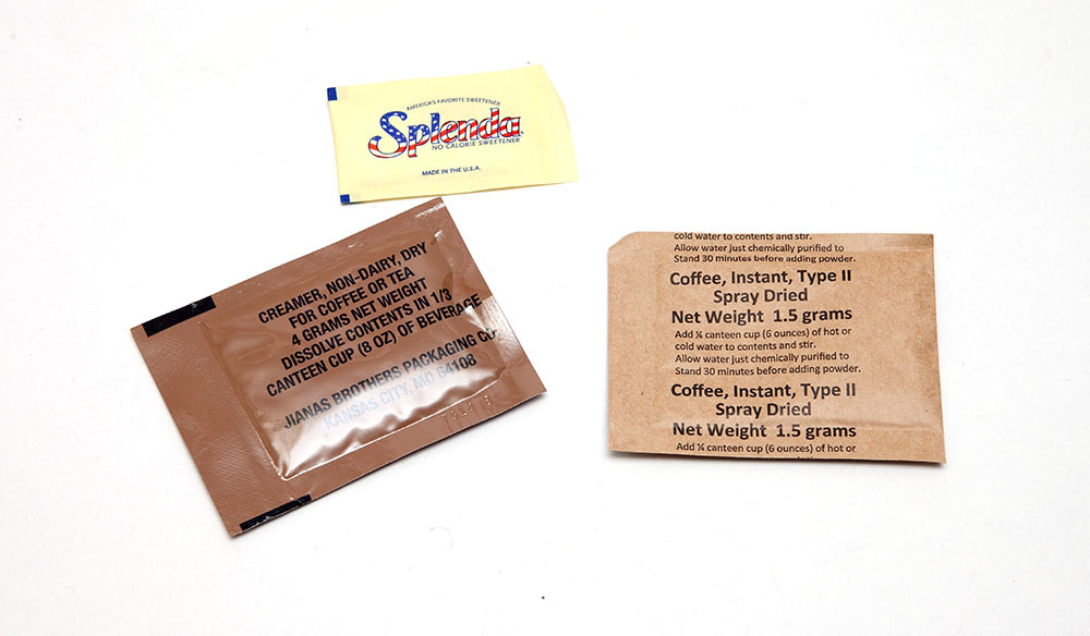 MRE에는 인스턴트 커피가 한 잔 포함되어 있습니다. 설탕이나 감미료 중 하나가 들어있을 수 있습니다. 커피의 맛은 일반적인 마트의 저렴한 브랜드 커피와 비슷하다고 할 수 있습니다. 토피칼 펀치는 인공 향료가 사용되었을 가능성이 높습니다. 그래서 자연스러운 맛을 기대하기는 어렵습니다.